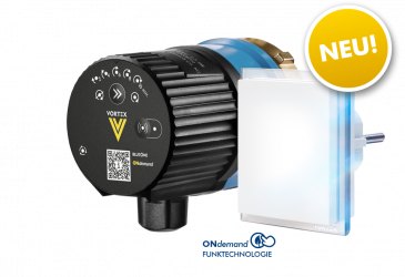 Die Pumpe mit ONdemand-Modul läuft nur dann, wenn der mitgelieferte Funkschalter betätigt wird. Der Funkschalter überträgt das Signal zum Pumpenstart und kann in jede beliebige Schukosteckdose eingesteckt werden. Die Pumpenlaufzeit ist wählbar zwischen 2 und 10 Minuten.